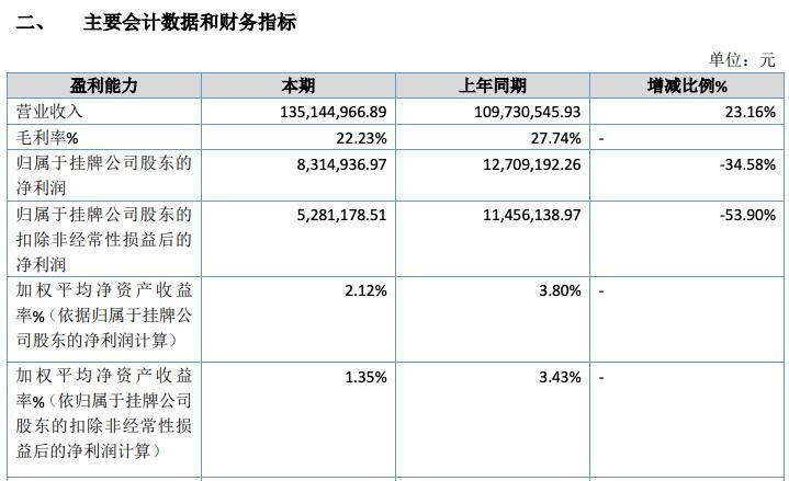 从财务数据来看,2025年1-6月,苏州双祺实现营收1.35亿元,同比增长23.16%;归属于挂牌公司股东的净利润831.49万元,同比下滑34.58%;扣非后净利润528.12万元,同比下滑53.9%。