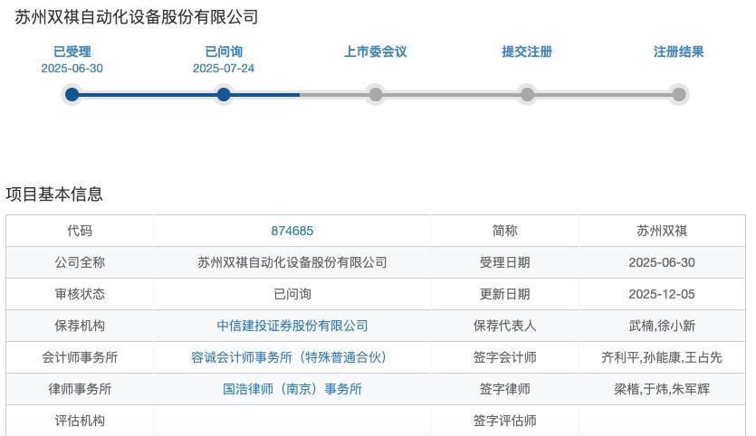据北交所官网,2025年6月30日,苏州双祺北交所IPO申请获受理,保荐机构为中信建投证券。